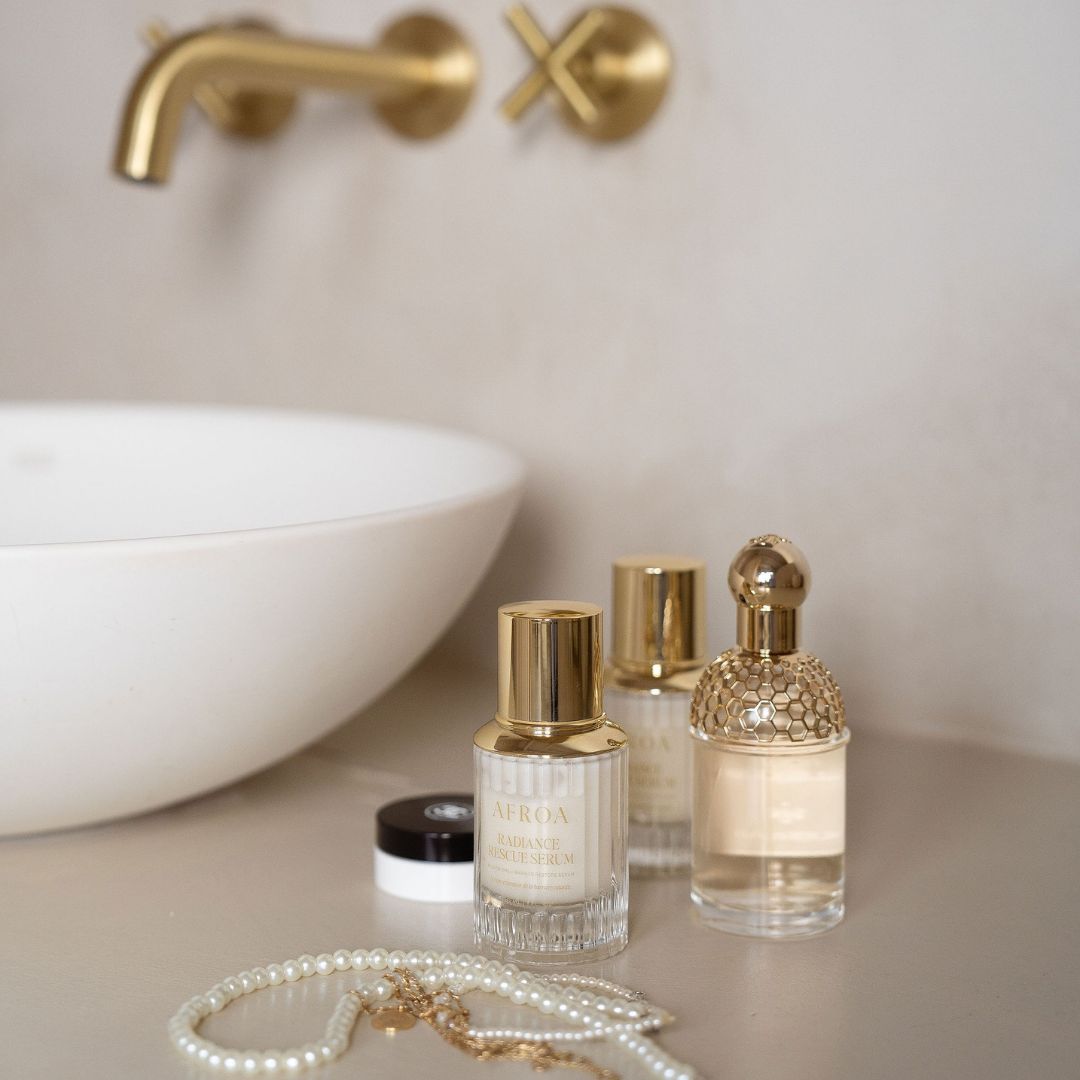 Inspired by the enduring elegance of the Baobab tree, the Radiance Rescue Serum is encased in a sculptural glass bottle that blends tradition and modernity. Its clear and gold design mirrors the purity and brilliance within, symbolizing AFROA Beauty’s commitment to artistry and sophistication.